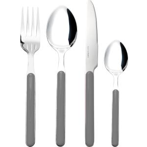 Besteckset bestehend aus 16 Teilen. Sehr solide Konstruktion mit rostfreiem Metallkern und eleganten Kunststoffgriffen. Spülmaschinenfest.